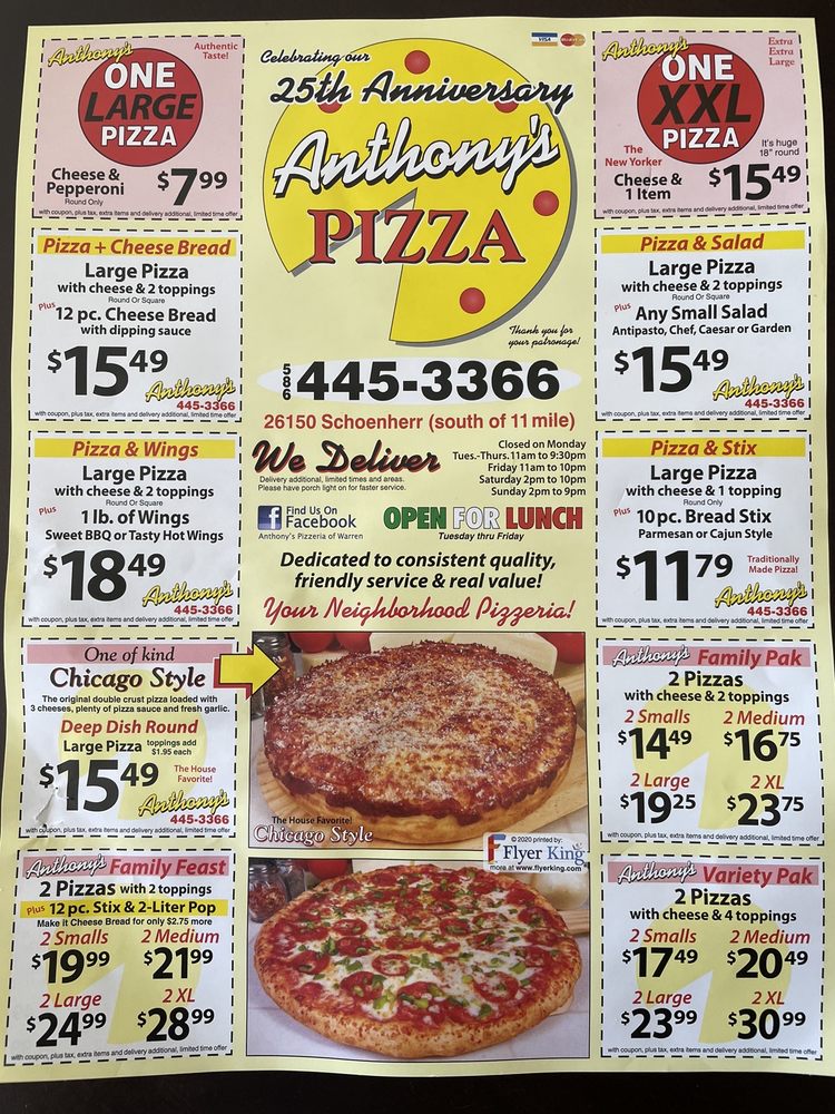 Welcome to Antony’s Italian Style Pizzeria, an authentic gem located in Warren, Michigan. Known for its commitment to delivering traditional Italian flavors, this cozy pizzeria is a haven for pizza enthusiasts and families alike. Conveniently situated at 26150 Schoenherr Rd, Antony’s offers a delightful blend of classic and innovative pizza options that cater to every palate.